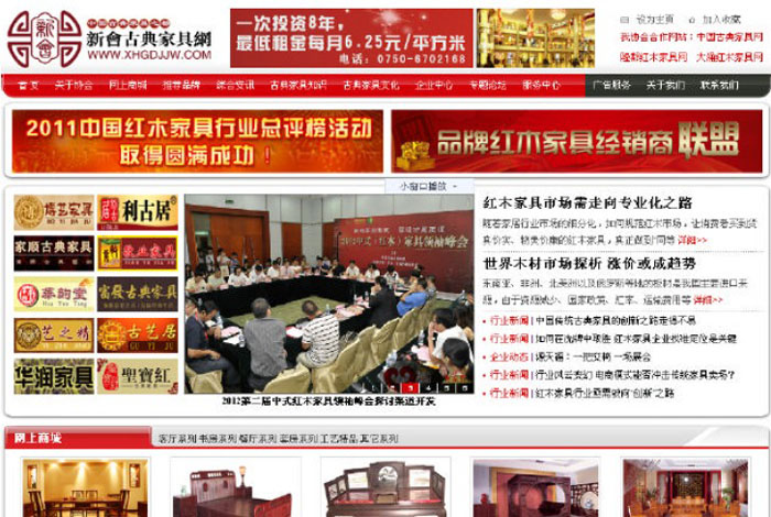 2010 年10 月,聯(lián)合江門市新會古典家具協(xié)會,開發(fā)運營了新會古典家具網(wǎng)(www.xhgdjjw.com);
