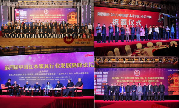 2013年11月,第四屆(2013)中國紅木家具行業(yè)總評榜啟動儀式暨新聞發(fā)布會在浙江省東陽市世貿(mào)君瀾大酒店隆重舉行,同期還舉行了《品牌紅木家具2013珍藏集》啟動儀式及品牌紅木家具經(jīng)銷商聯(lián)盟成立籌備會議。