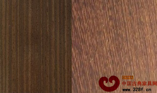 非洲雞翅木(左)和緬甸雞翅木(右)切面圖