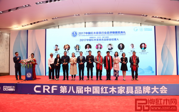 永華紅木(左一)被授予“2017中國紅木家具十大影響力品牌”稱號