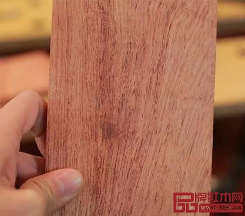 剛鋸開的小巴花呈粉棕色,偶爾會有紫黑色的條紋。隨著時間的轉(zhuǎn)移,粉棕色部分會漸漸變紅,而紫黑色條紋部分會漸漸變淺。它紋理交錯細(xì)密,所以加工時候要比較注意容易產(chǎn)生倒刺。也基本沒有特別的氣味。