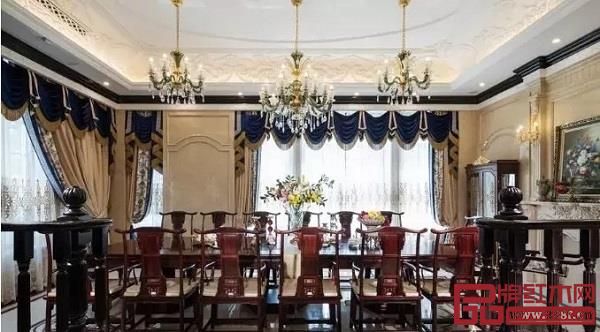 中西混搭中,清式紅木家具是被優(yōu)先考慮的,煥彩生輝、雕刻精美的清式紅木家具與歐式風(fēng)格的宅院會(huì)更加的合適。