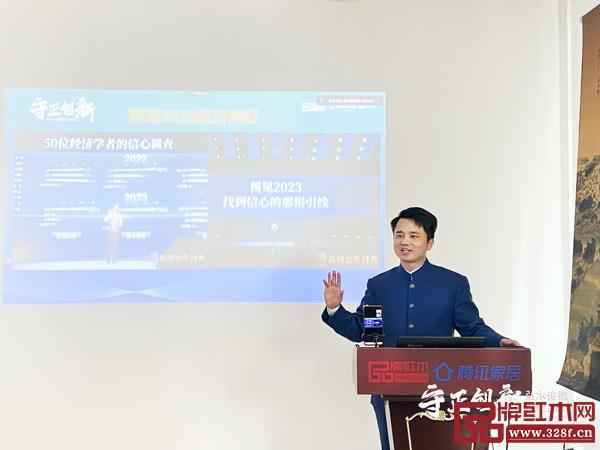 全聯(lián)藝術(shù)紅木家具專業(yè)委員會執(zhí)行會長,品牌紅木創(chuàng)始人、CEO林偉華發(fā)表弘木傳媒年度總結(jié)講話