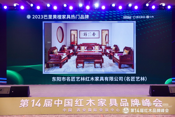名匠藝林榮獲“2023巴里黃檀家具熱門品牌”