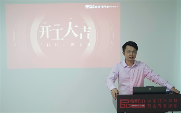 品牌紅木創(chuàng)始人、CEO林偉華在開工大會(huì)上進(jìn)行新年寄語致辭