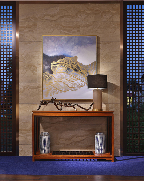 新中式風格空間的裝飾多采用簡潔硬朗的直線條。直線元素在空間裝飾的運用,不僅反映出現(xiàn)代國人追求返璞歸真的簡單生活家居,更展現(xiàn)了中式家居追求內斂、質樸的設計風格,讓“新中式”更加實用、更富現(xiàn)代感。