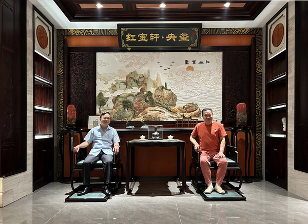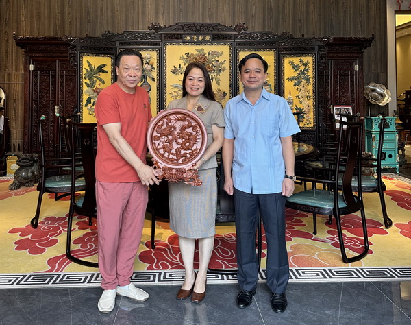 隨后,越南考察團(tuán)的阮庭占副部長也滿懷熱情地回應(yīng)了這一溫馨舉動(dòng)。他同樣從隨行人員手中接過一份包裝精美的禮物,這份禮物是越南傳統(tǒng)手工藝品,以當(dāng)?shù)靥赜械牟牧暇闹谱鞫?,上面雕刻著越南?dú)有的文化符號(hào)與自然景觀,既體現(xiàn)了越南文化的深厚底蘊(yùn),也寄托了對(duì)紅寶軒家具及中國文化的尊重與欣賞。阮副部長表示,這份禮物象征著越南與紅寶軒之間文化交流的橋梁,希望未來雙方能像這禮物一樣,緊密相連,共同促進(jìn)兩國文化的繁榮發(fā)展。