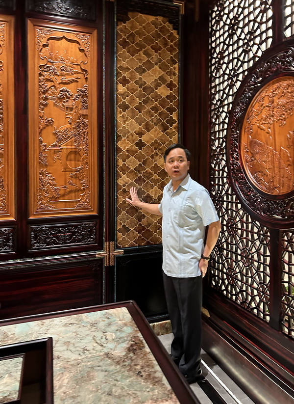 9月10日上午,應(yīng)全聯(lián)家具裝飾業(yè)商會(huì)邀請(qǐng),越南社會(huì)主義共和國河內(nèi)東英縣委考察團(tuán)蒞臨紅寶軒家具。此次越南河內(nèi)東英縣委赴廣東考察團(tuán),由東英縣委員及宣傳部副部長阮庭占帶隊(duì),云荷鎮(zhèn)黨委委員兼人民政協(xié)主席陶功宣,越南云荷鎮(zhèn)鎮(zhèn)長、副書記杜氏好女士、河內(nèi)木雕工藝師杜文強(qiáng)等一行20余人組成,在大涌鎮(zhèn)副鎮(zhèn)長譚小龍、經(jīng)統(tǒng)局李子昌局長、中山市紅木家具行業(yè)協(xié)會(huì)會(huì)長林志洪的陪同下參觀考察。