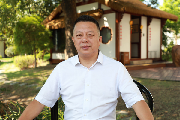 中國(guó)傳統(tǒng)工藝大師、明堂家居總經(jīng)理張向榮在斗方小屋前談小木屋的智能化及其未來(lái)發(fā)展方向