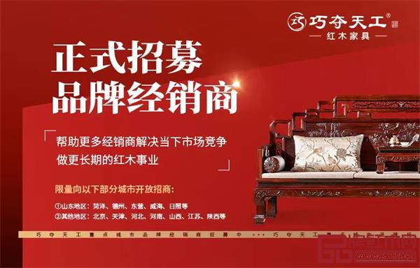 ○9月25日,巧奪天工紅木品牌經(jīng)銷商正式招募。