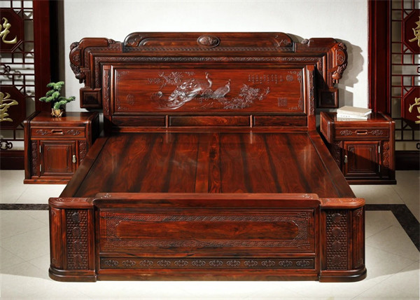 《國(guó)色天香大床》靠背板雕刻也正是風(fēng)華絕代的孔雀和牡丹相配,象征著愛情美滿,家庭幸福,吉祥富貴之意。在這張床上,每一夜都是對(duì)美好生活的向往與追求,每一次醒來都是對(duì)新一天的期待與憧憬。