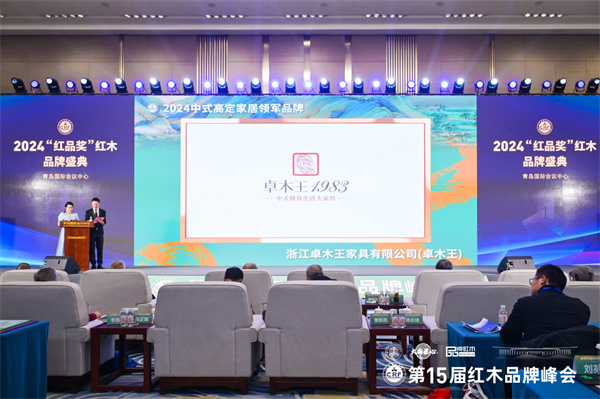 本屆峰會以“定力至上 相信品牌的力量”為主題,同期舉辦2024“紅品獎”紅木品牌盛典,浙江卓木王控股集團(tuán)有限公司(簡稱卓木王)榮獲“2024中式高定家居領(lǐng)軍品牌”榮譽(yù),卓木王總裁杜長江上臺領(lǐng)獎并在臺上接受央視主持人肖貴寧的采訪。