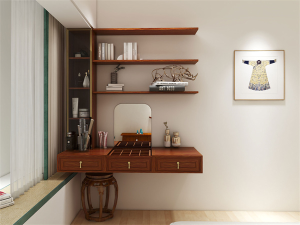 主臥空間寬敞,配置了一張舒適的大床與定制的衣柜,并融入了集梳妝與儲(chǔ)物于一體的多功能梳妝臺(tái)設(shè)計(jì),既實(shí)用又彰顯品味。