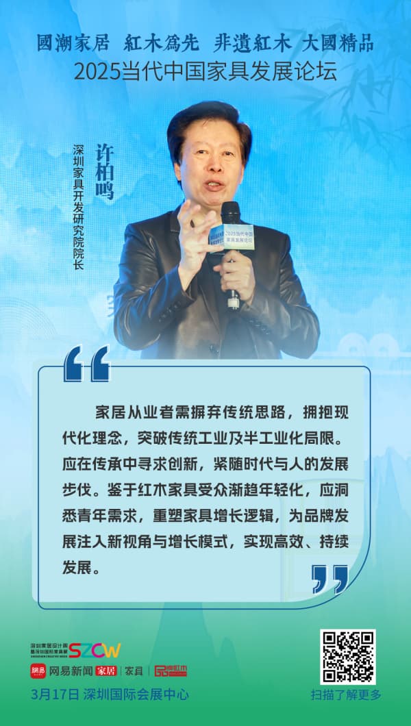 [摘要]深圳家具開發(fā)研究院院長(zhǎng)許柏鳴,為論壇帶來深度見解與前沿觀點(diǎn)。