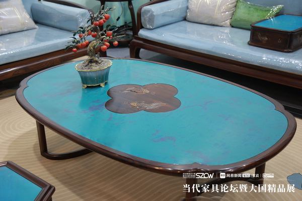 2.非遺技藝的現(xiàn)代表達:融入大漆非遺技藝,搭配玫瑰椅的微創(chuàng)新設計,將千里江山、海浪紋、山水紋等宋式美學元素巧妙融入,既保留了中式韻味,又增添了現(xiàn)代藝術氣息。