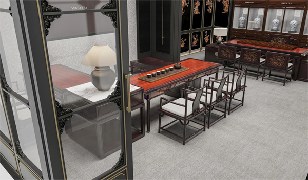 正如茶博會“專業(yè)化、國際化、年輕化”的宗旨,友聯(lián)·茶汐亦在傳統(tǒng)與當(dāng)代的平衡中,尋找紅木茶空間美學(xué)的當(dāng)代表達(dá)。