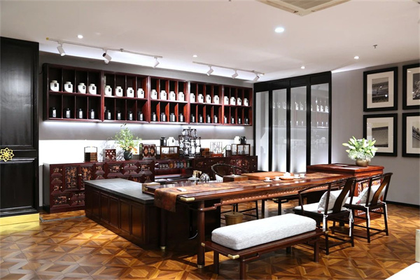 紅木茶臺可延展為宴客長案,茶柜可重構(gòu)為獨立小幾——友聯(lián)·茶汐的模塊化設(shè)計,以“去客廳化”理念為指引,打破傳統(tǒng)茶空間的固化形態(tài)。