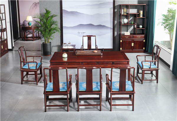 實(shí)用性是鼎順紅木絨毛黃檀家具的顯著特質(zhì)。從客廳的羅漢床、茶室的明式茶臺(tái),到書房的書柜與臥房的雕花大床,每一件家具都緊密圍繞生活需求設(shè)計(jì)。