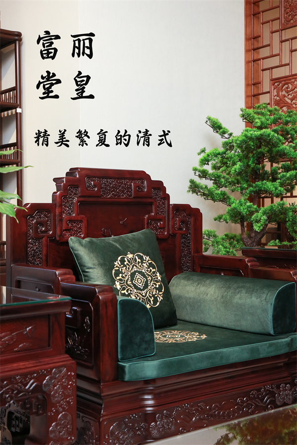 清式家具以紫檀、酸枝木為主要用材,輔以花梨、烏木等。與明式相比,雖選材相似,但風格迥異,更加注重材料的豪華感和裝飾性。
