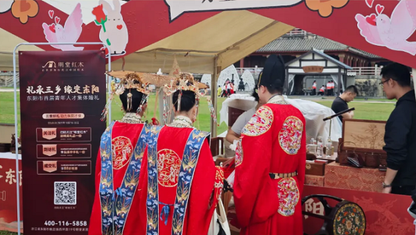 作為東陽”三鄉(xiāng)文化”的傳承者,明堂紅木以器傳情,為新人們送上美好祝愿,也為這場盛會注入歷久彌新的文化溫度。