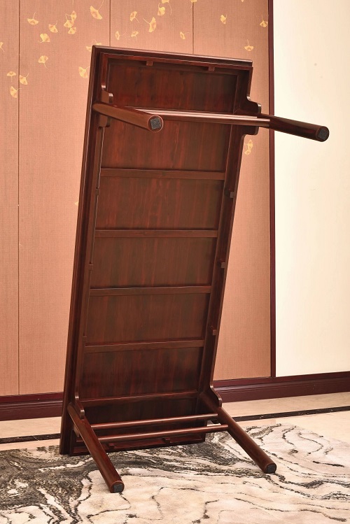 此款茶臺的茶桌造型復(fù)刻于《紫檀裹腿羅鍋棖加霸王棖黑漆面畫桌》,原物現(xiàn)藏上海博物館家具館。凹凸傳奇致敬經(jīng)典,以珍貴的小葉紫檀木復(fù)刻該畫桌,結(jié)構(gòu)簡練,造型淳樸,功能多元化,可作畫桌、書桌、茶桌。