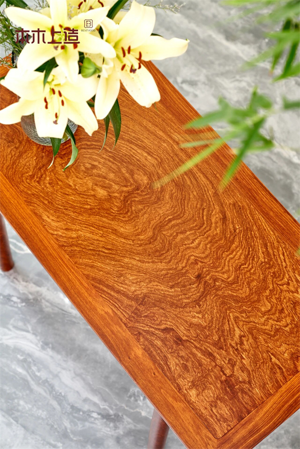 我們聚焦三大經(jīng)典木料,各具特色:24K刺猬紫檀作為性價(jià)比與穩(wěn)定性兼具的優(yōu)選,常年備有充足庫(kù)存,確保每一件定制家具都能用上正宗原材,杜絕摻假;緬甸花梨作為國(guó)標(biāo)紅木中的熱門品類,不僅密度適中、耐磨抗壓,更自帶天然檀香,能安神舒緩,其獨(dú)特的虎皮紋、水波紋紋理,經(jīng)整板裁切后更顯質(zhì)感,是顏值與實(shí)用性的雙重?fù)?dān)當(dāng);有著"萬(wàn)木之王"稱號(hào)的柚木,憑借極小的膨脹收縮率,實(shí)現(xiàn)日曬雨淋不翹不裂,天然油脂帶來(lái)的耐腐防蟲屬性,讓家具即便歷經(jīng)歲月也能保持完好狀態(tài),泰坦尼克號(hào)甲板的用料便是其穩(wěn)定性的最佳證明。