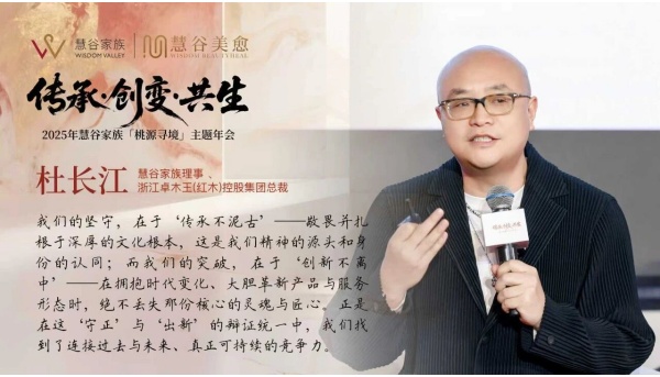 2025年11月22日,「傳承·創(chuàng)變·共生」慧谷家族2025年度大會在北京正大中心宴會廳隆重舉辦。浙江卓木王(紅木)控股集團(以下簡稱卓木王)總裁杜長江作為慧谷家族理事,受邀參加慧谷家族2025年度大會,并在“傳承的共同體”論壇中作精彩發(fā)言。