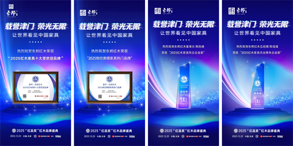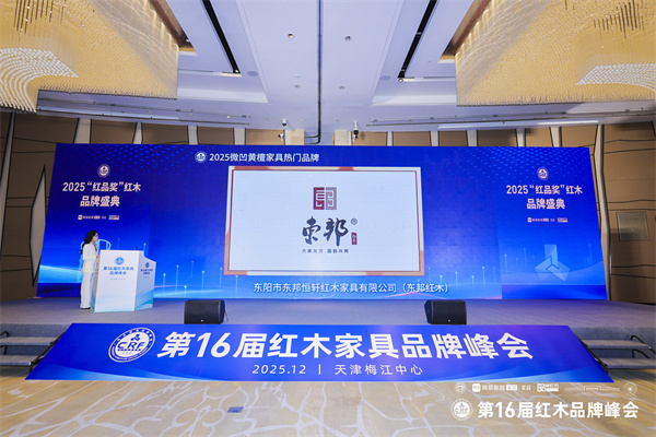 12月25日,第16屆紅木家具品牌峰會在渤海明珠——天津盛大啟幕。作為中國紅木行業(yè)的風向標,峰會匯聚了全國頂尖品牌、行業(yè)專家與精英,共同探討紅木文化的傳承與創(chuàng)新方向。本屆峰會以“AI驅(qū)動,共筑品牌新生態(tài)”為主題,聚焦行業(yè)高質(zhì)量發(fā)展路徑,并發(fā)布權(quán)威榜單“紅品獎”,表彰為行業(yè)發(fā)展作出卓越貢獻的企業(yè)與個人。深耕紅木領(lǐng)域三十余年的東邦紅木受邀出席,憑借深厚的品牌積淀與創(chuàng)新實力,在峰會上一舉斬獲四項重磅榮譽。