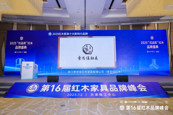 本屆峰會(huì)以“AI驅(qū)動(dòng) 共筑品牌新生態(tài)”為主題,同期舉辦高規(guī)格的第16屆紅木家具品牌論壇、全聯(lián)紅木整裝家具專業(yè)委員會(huì)成立大會(huì)暨就職典禮、2025“紅品獎(jiǎng)”紅木品牌盛典等,李忠信紅木以卓越實(shí)力斬獲“2025紅木家具十大影響力品牌”、“2025闊葉黃檀家具熱門(mén)品牌”、“2025紅木整裝定制熱門(mén)品牌”“2025紅木家具十大領(lǐng)軍企業(yè)家”等多項(xiàng)大獎(jiǎng),成為2025“紅品獎(jiǎng)”紅木品牌盛典全場(chǎng)焦點(diǎn)。